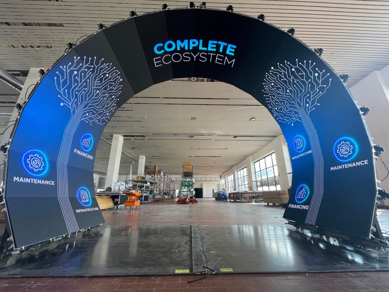 Nell’area dedicata allo stand Iveco presso la fiera internazionale dei trasportiIAA Transportation”, presentiamo l’arco digitale, un’installazione avanzata progettata per offrire un’esperienza immersiva e interattiva ai visitatori. Composto da una serie di monitor di alta qualità accuratamente posizionati, l’arco digitale crea un ambiente coinvolgente attraverso il quale i partecipanti possono esplorare le soluzioni innovative del nuovo servizio Iveco, Gate.